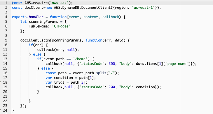 Notes: The response body must be a string, whereas I want to return data from the DynamoDB table as a JSON response.
