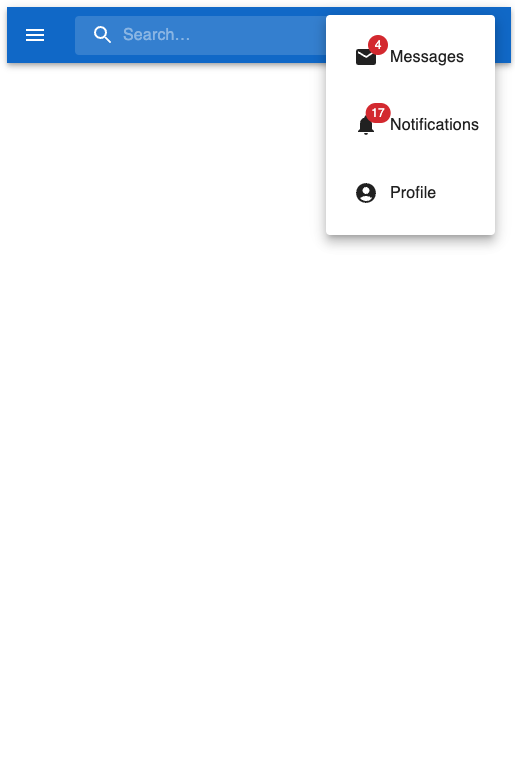 Finished building out the Primary App Bar with a Search Bar & Icons.
